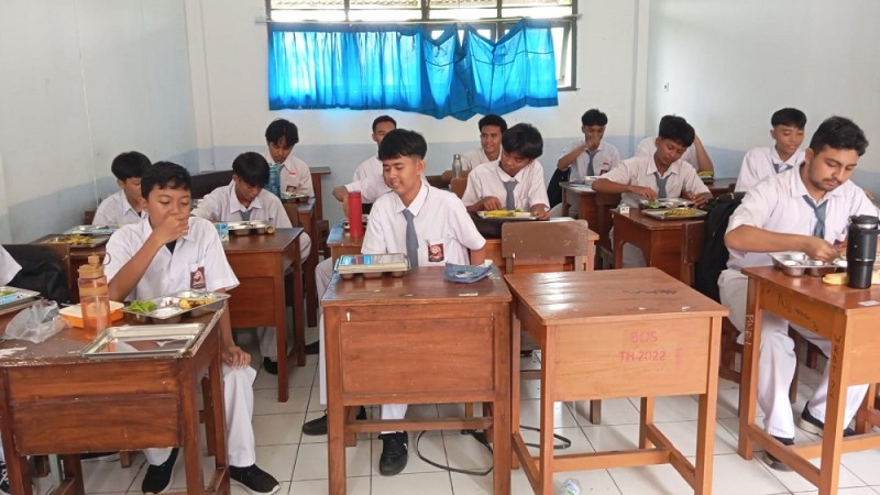 Launching program MBG di SMK Tadika Pertiwi dilaksanakan mulai hari Senin, 20 Oktober 2025, dengan penuh antusias para siswa menerima makanan bergizi yang disiapkan sesuai standar gizi seimbang, mulai dari karbohidrat, protein, sayuran, buah, hingga susu.